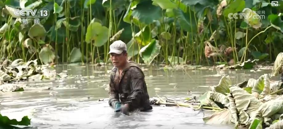 莲藕是个宝,挖莲藕却是体力活,被称作“泥里淘金”。在上海金山廊下中丰村的藕塘里,采藕人身着连体水裤,在齐腰深的水中仔细寻找莲藕。不光是在淤泥中行走艰难,要用好采藕用的高压水枪,既要体力、也要技术。