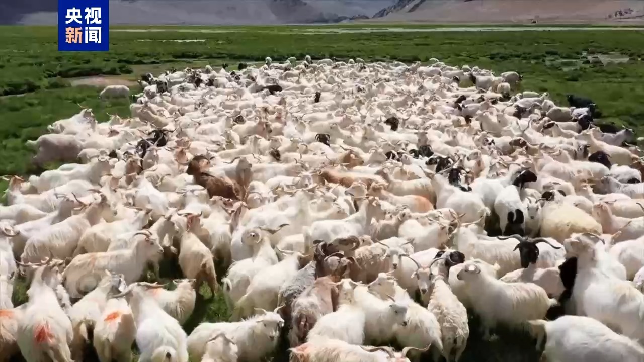 西藏阿里地区日土县日土村党支部书记 嘎玛多吉:我们合作社那边羊一千五百多只,羊绒一千多斤,今年比去年高一点。