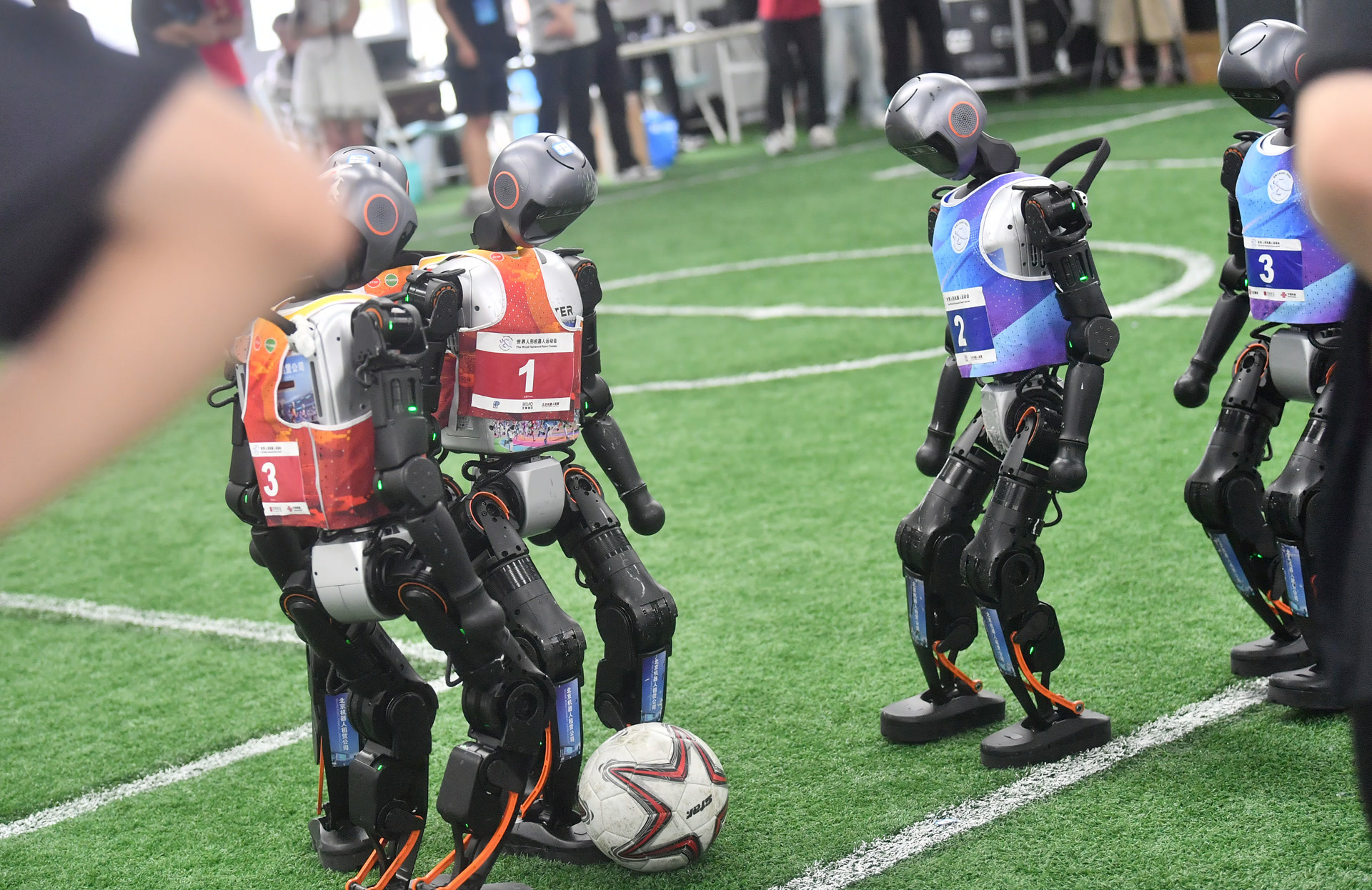 据了解,预选赛将分别决出足球3v3和足球5v5两个组别的8强,进入最终的正式比赛,争夺首届世界人形机器人运动会足球赛项的冠军。