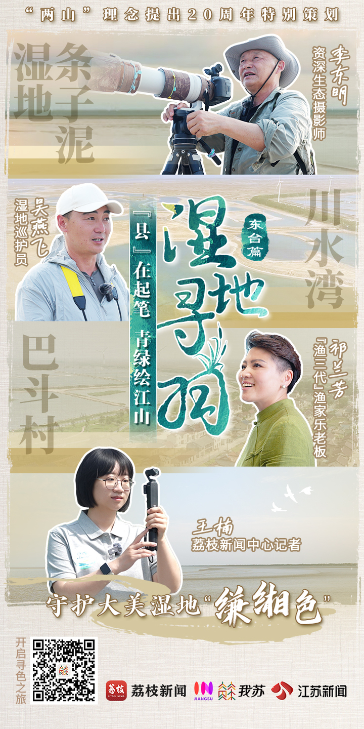 这片湿地之色如何绘就?荔枝新闻中心记者来到东台,体验“打鸟”,参观鸟群“住所”,探访观鸟渔村,与三位当地人相约找寻这份生态美背后的翩翩“湿”意。