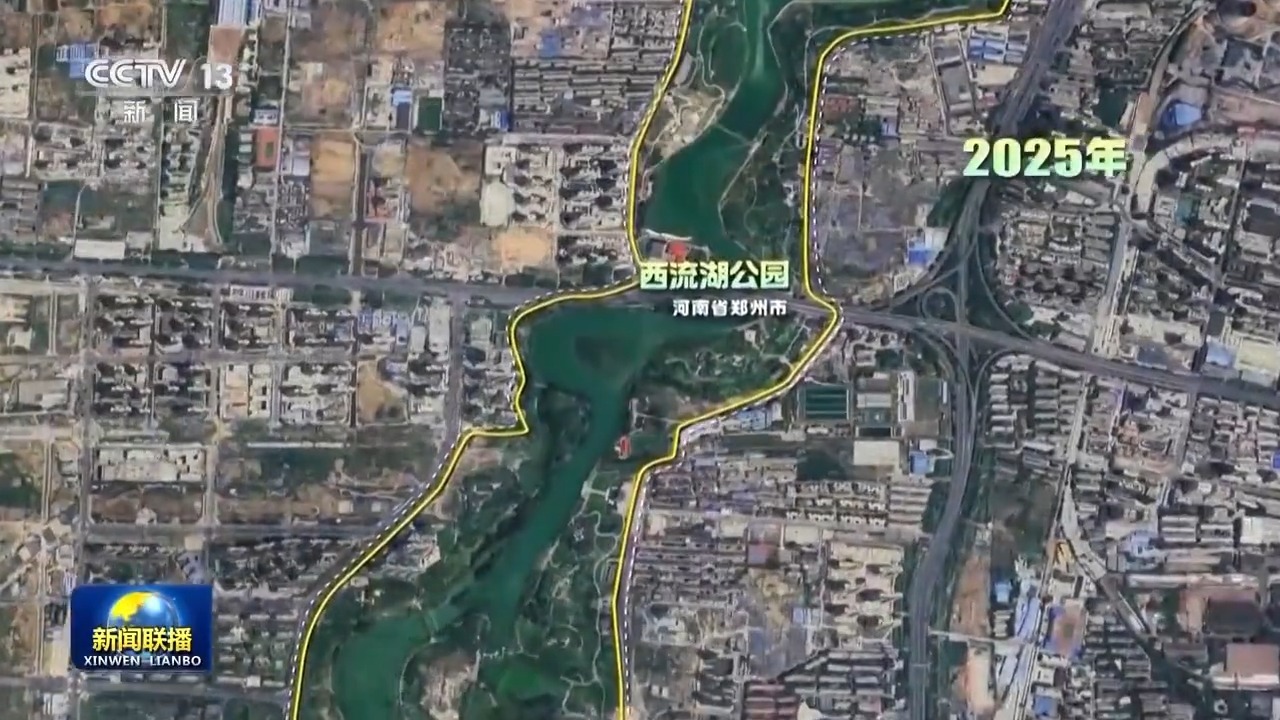 这是河南郑州西流湖公园,贾鲁河故道滩涂上3.2平方公里新增植被已绿树成荫。