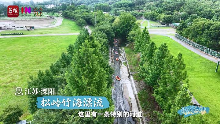 环着天目湖一路追寻,记者来到溧阳市戴埠镇松岭村。山涧之中,一条水道载着人们的欢声笑语奔流而下,这便是溧阳的夏日“顶流”——松岭竹海漂流。