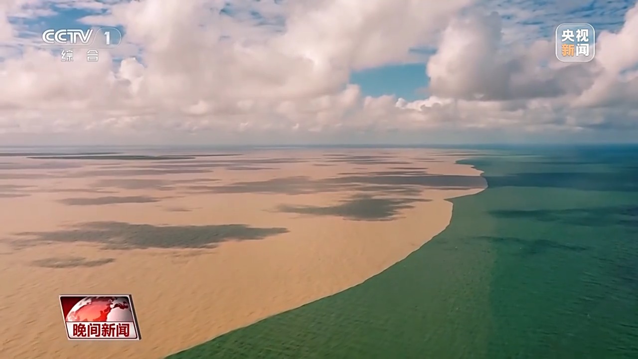 总台记者 李栋:我现在是在山东东营的黄河入海口。这里就是黄河奔流到海不复回的壮阔终点。通过镜头我们可以看到,黄河与渤海交汇处正呈现出独特的黄蓝交汇的自然景观,如同巨大的“鸳鸯火锅”。就在投入大海怀抱前的最后一程,黄河将携带的泥沙沉淀在这里,打造出一片生命摇篮——黄河三角洲。