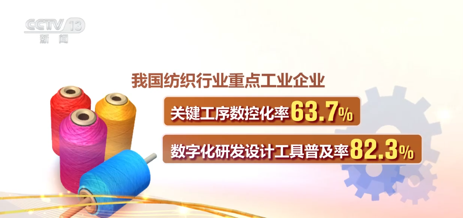 目前,我国纺织行业重点工业企业关键工序数控化率为63.7%、数字化研发设计工具普及率达82.3%。其中,棉纺、化纤等领域龙头企业智能工厂达到世界领先水平。人工智能、数字孪生等新一代信息技术的应用,推动纺织行业加速数字化、智能化转型升级。