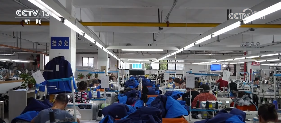 在浙江诸暨的一家服饰生产企业,来自欧洲的5万件多功能双面棉服订单正在全力赶制当中,月底前需全部完成,并打包发货。