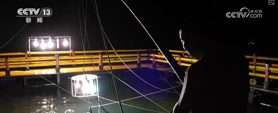 小管是东山海域特有的小鱿鱼,昼伏夜出对光线极为敏感,渔民们便循着这份习性,带着游客开启夜间捕捞。渔船行驶10分钟后,抵达近海养殖区边缘的捕捞点,渔民们开始架设诱光灯和网具。