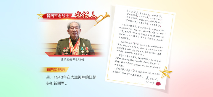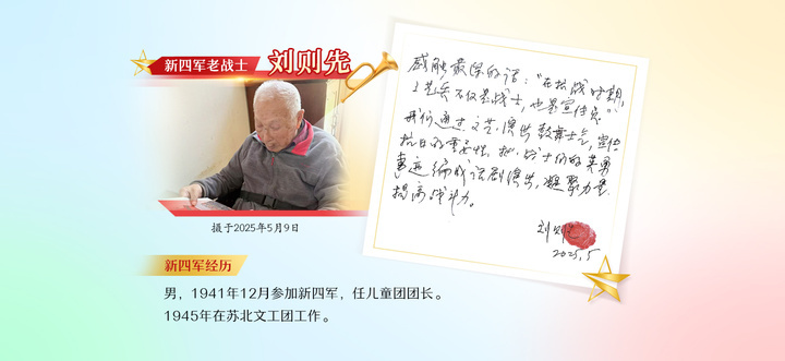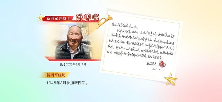 采访尾声,当被问及对青年的期许时,老人挺直脊梁,铿锵有声:“我希望年轻人好好学习、努力奋斗,继承革命的优良传统。”此时此刻,他眼中燃烧的信念,仍如那个扛着机枪冲过三垛河堤的20岁少年。