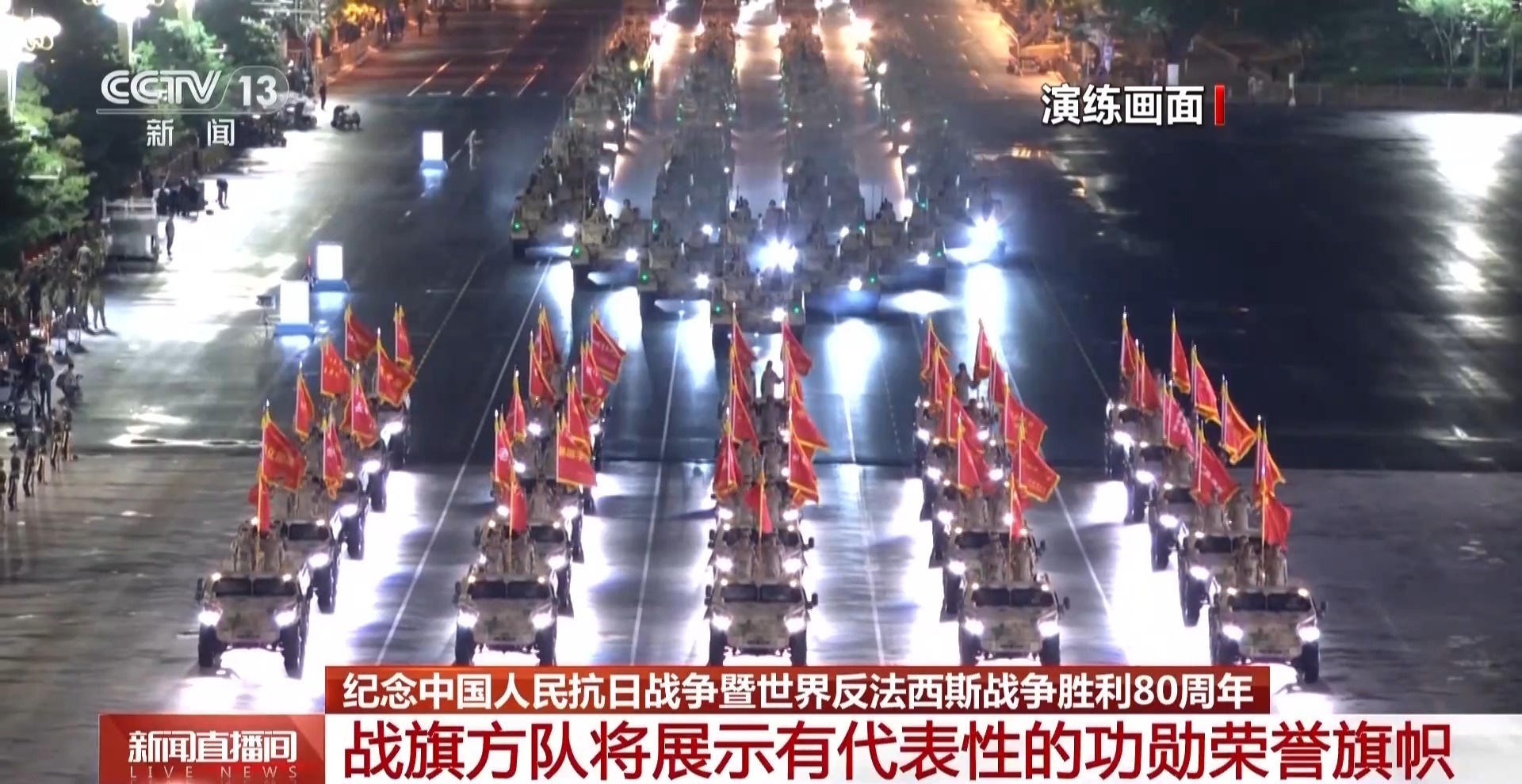 纪念中国人民抗日战争暨世界反法西斯战争胜利80周年大会明天将举行。大会包括约70分钟的盛大阅兵。旗帜引领方向,旗帜凝聚力量。在明天的阅兵活动上,在党旗、国旗、军旗引领下,受阅方队将擎军旗和武警部队旗集中亮相,战旗方队也将展示功勋荣誉旗帜。