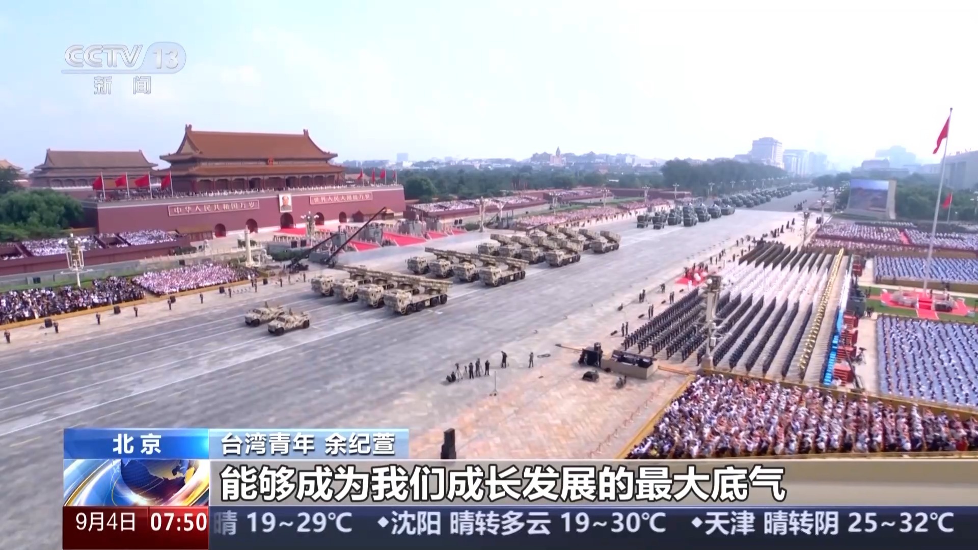 台湾青年 余纪萱:80年后的今天,我在现场看到了我们的祖国能够这么强盛,有这么多先进的设备,有这么多“国之重器”,能够成为我们成长发展的最大底气,我觉得非常感动。