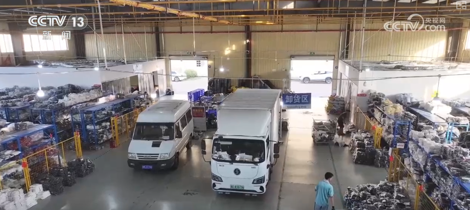 卖服装能有多忙?记者在天门当地这家服装电商龙头企业的仓库里看到,工人们正在不停分拣即将要发出的包裹。货车在门外排队等候,每装满一辆就要立刻发车一辆。