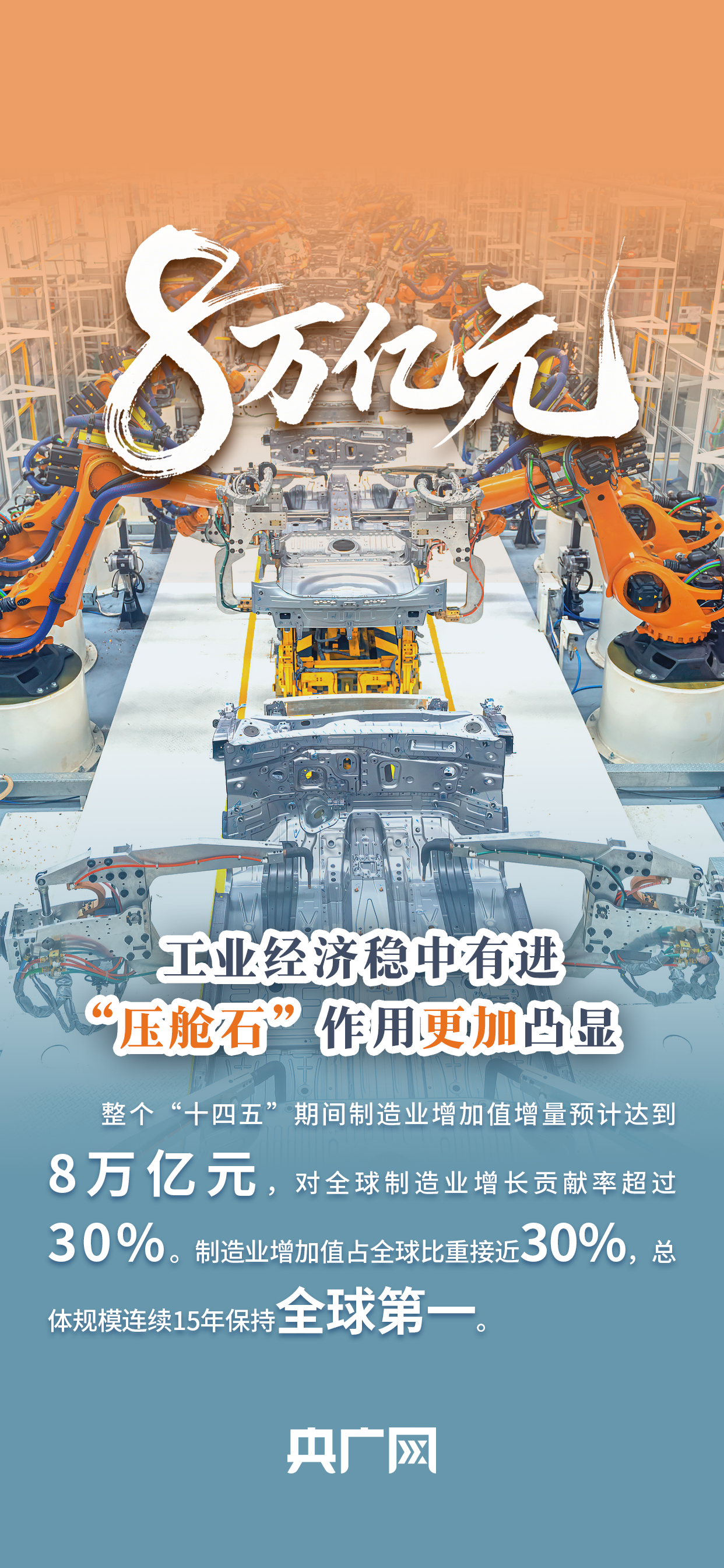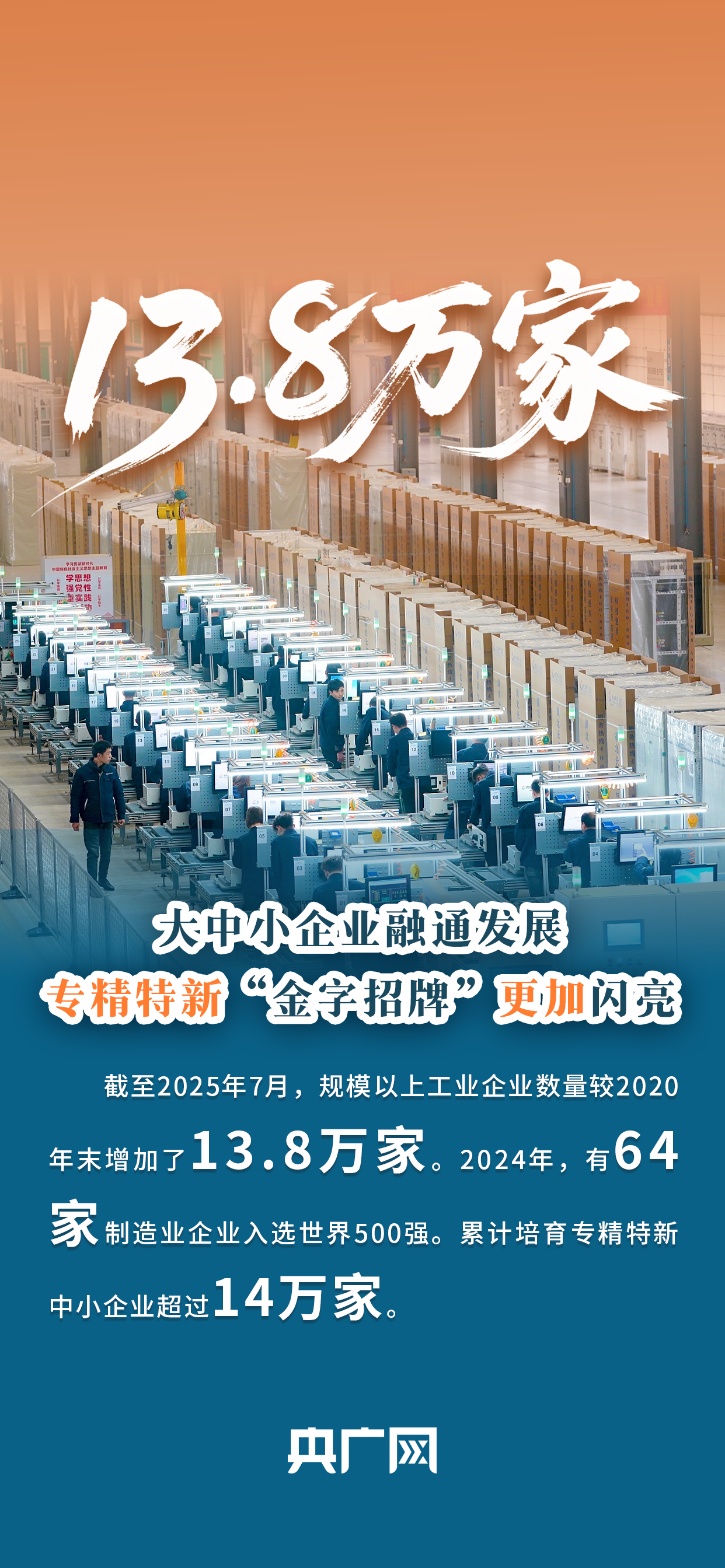 制造业总体规模连续15年保持全球第一,新能源汽车产销量连续10年保持全球第一,专精特新中小企业超14万家……一组数据看新型工业化发展“亮眼成绩单”。