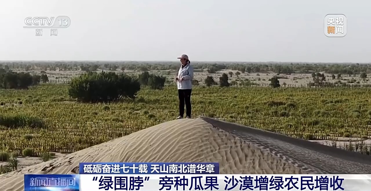 “绿围脖”旁种瓜果 沙漠增绿农民增收