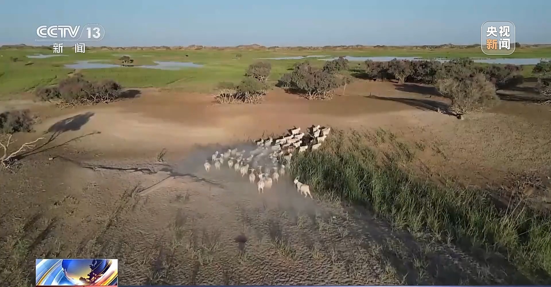 中国科学院新疆生态与地理研究所研究员 凌红波:黄羊不怕人了,闲庭信步地在那儿散步呢。这就是人与自然和谐相处。