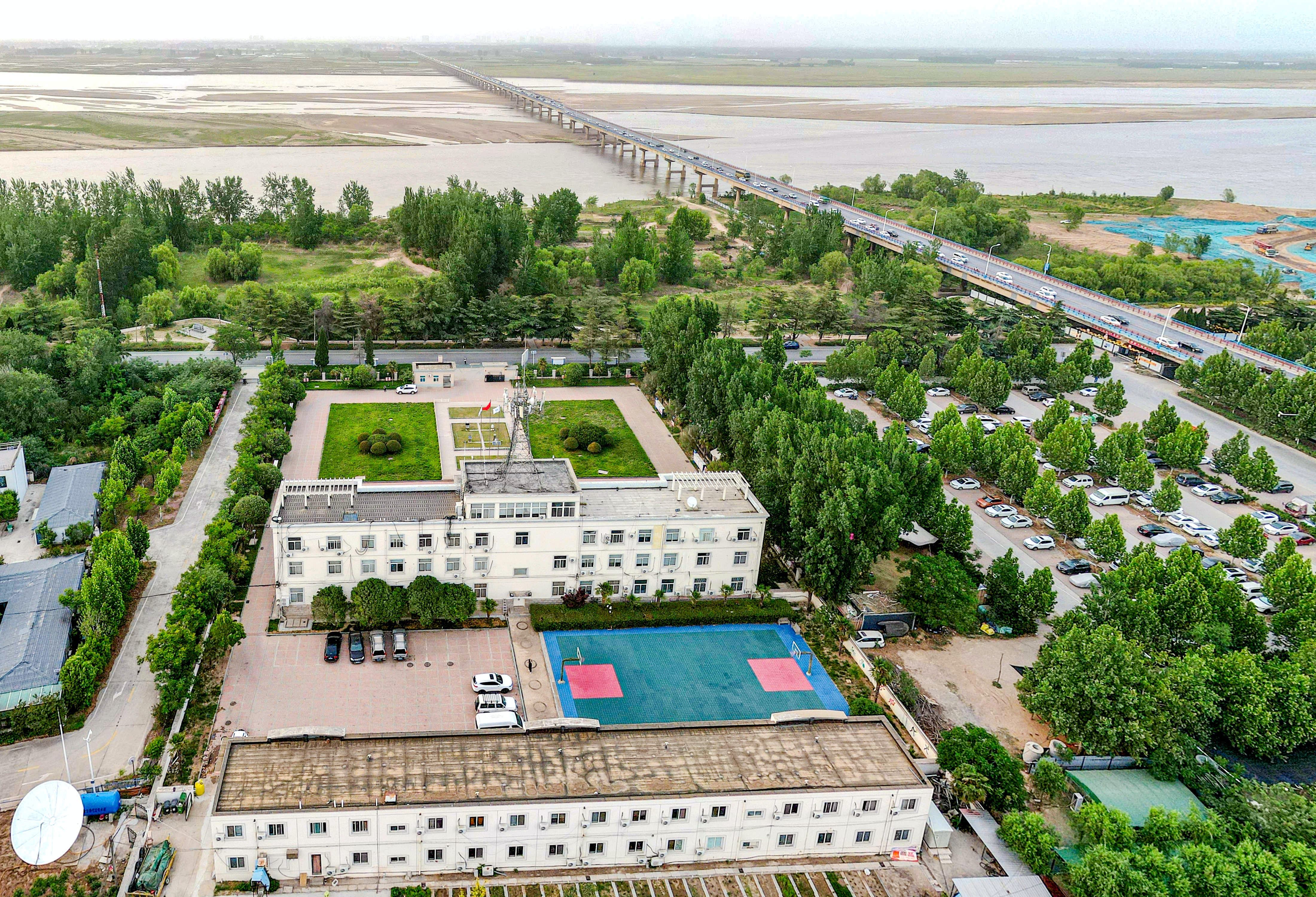俯瞰花园口水文站。