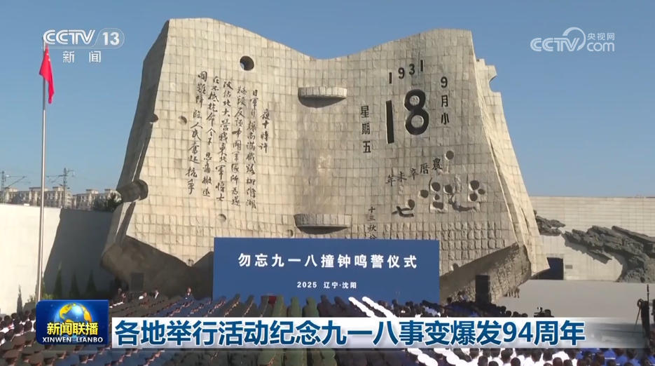 央视网消息(新闻联播):九一八事变爆发94周年之际,各地举行多种活动,传承和弘扬伟大抗战精神,铭记历史、缅怀先烈、珍爱和平、开创未来。