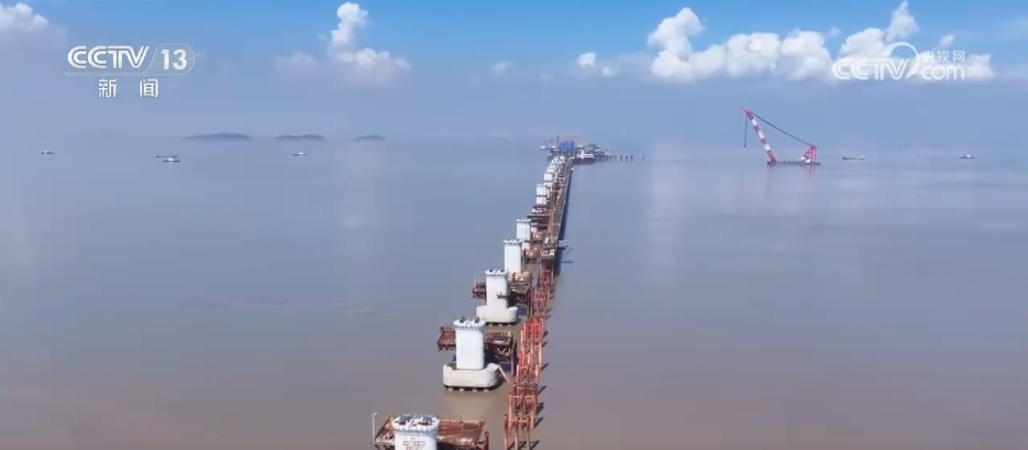 据了解,杭州湾跨海铁路桥是 通苏嘉甬高铁的 关键控制性工程,也是目前世界最长高速铁路跨海大桥,全长29.2公里,连接嘉兴海盐与宁波慈溪,设计时速350公里,计划在2027年底具备通车条件。