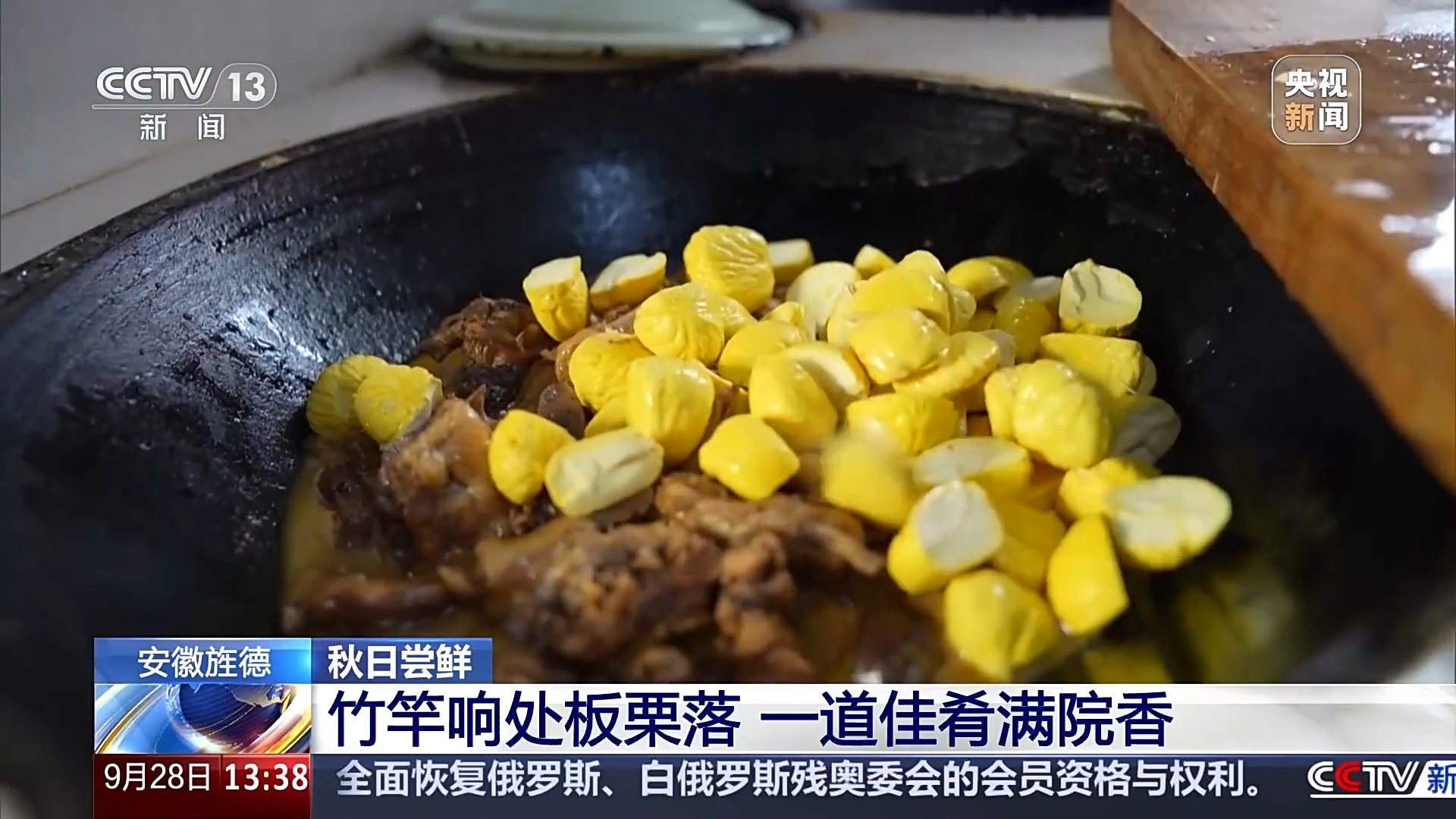 目前,安徽省宣城市旌德县的板栗也成熟了,当地村民们会去采摘新鲜的板栗,做一道美味佳肴——板栗烧鸡。