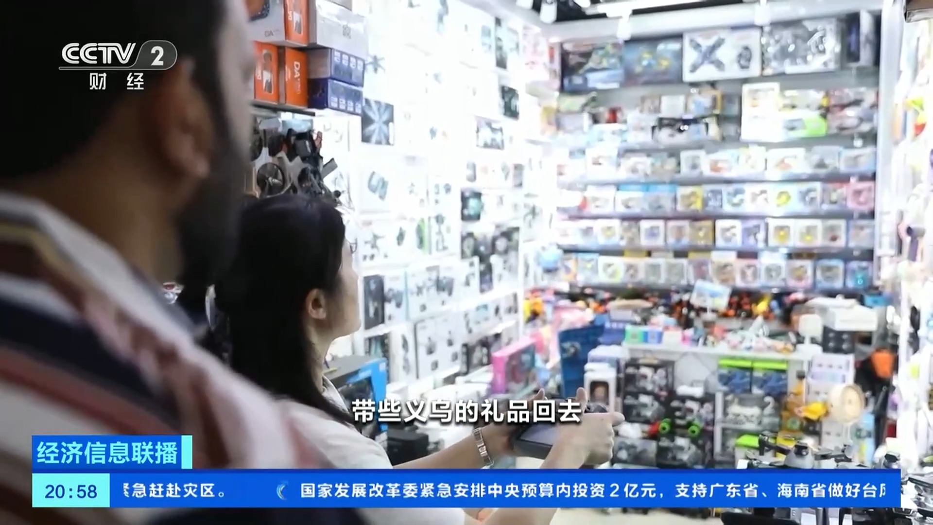 下午两点,义乌国际商贸城一区的玩具特色街区热闹非凡,这条长约三百米的大通道上,飞在空中的无人机、能翻跟斗的特技车、憨态可掬的小玩偶,诸多的玩具让游客目不暇接,不少外籍游客也加入其中。来自巴基斯坦的穆赫辛在不到一个小时的时间里,就买了手持风扇、汽车模型以及无人机等多种玩具。
