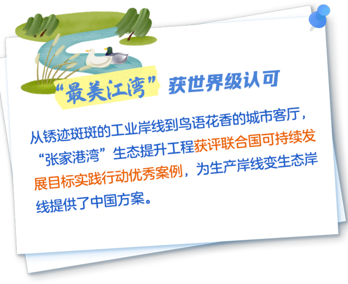 改变始于2019年。这一年,张家港投入30多亿元启动张家港湾生态提升工程,一场“退生产、还生态”的变革就此展开:9公里生产岸线全部调整为生态岸线,4平方公里规划产业用地彻底腾退,30公顷芦苇滩涂湿地逐步修复,140万平方米滨江亲水景观带串联成链......真正让“工业锈带”变身为人人向往的“生态秀带”。