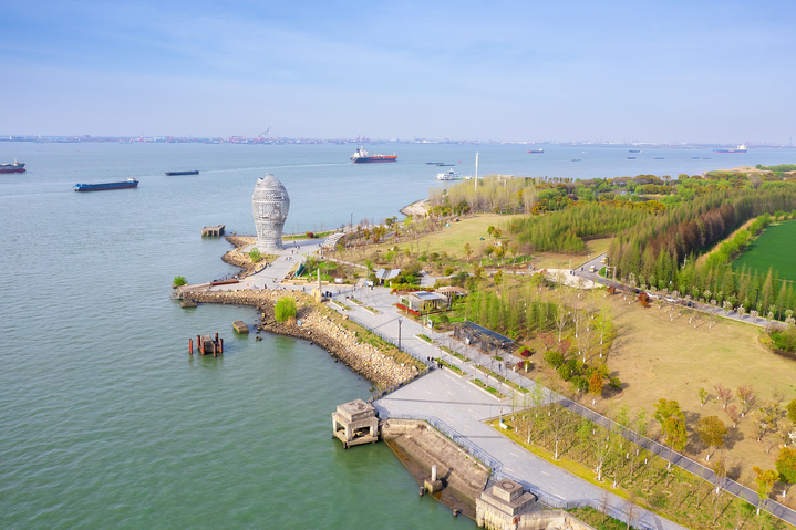 位于张家港西北部的张家港湾,是长江入海前最后一个超过90度的弯道。