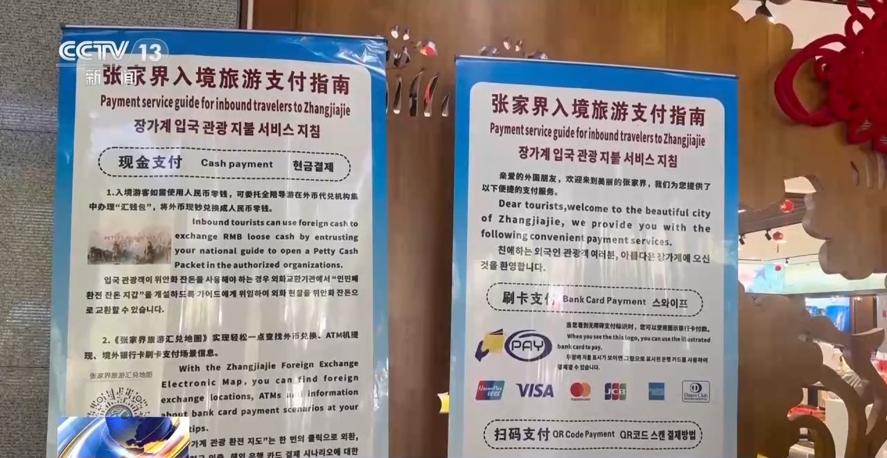 为了打通支付堵点,让入境游客支付不再难,张家界根据游客的活动轨迹和消费热点区域,实现景区、酒店、商圈等高频消费区域外卡刷卡机全覆盖,并设置3台自助外币兑换机、25家外币代兑机构,构建了“大额刷卡、小额扫码、现金兜底”的多元支付服务体系,提升游客支付便利度。