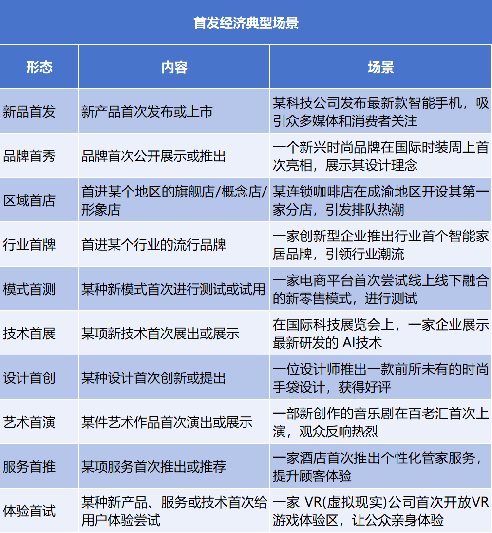 通常来看,首发经济是指企业发布新产品,推出新业态、新模式、新服务、新技术,开设首店等经济活动,涵盖了企业从产品或服务的首次发布、首次展出到首次落地开设门店、首次设立研发中心,再到设立企业总部的链式发展全过程。
