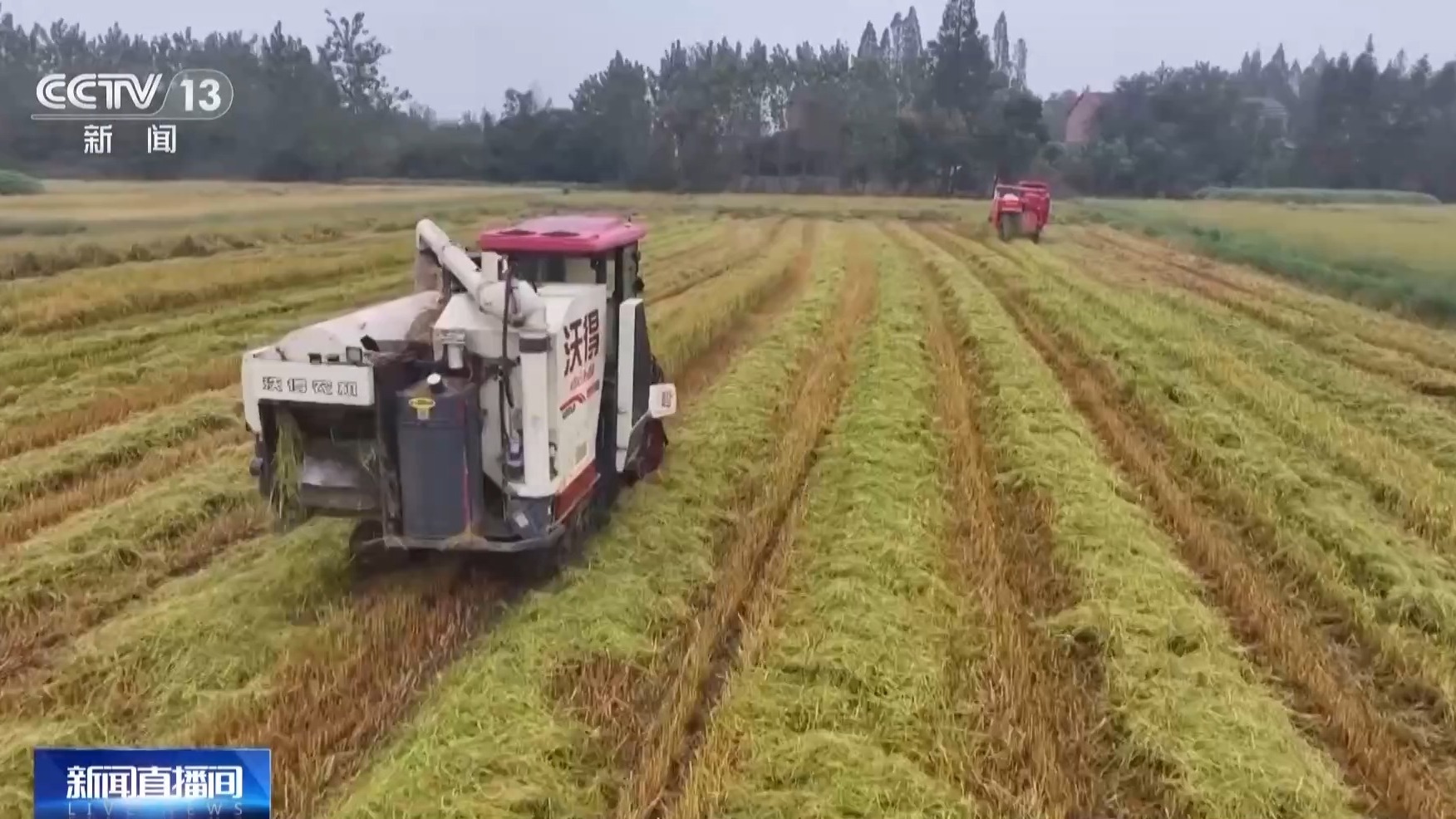 沅江市黄茅洲镇种粮大户 曹斌:这些收割机都是今年我们通过报废更新补贴政策更新的新型号,不仅加宽了履带,有效保护耕地地力,还通过加长脱粒线,加密振动筛等一些核心升级,让谷粒损耗率跟之前的老机型相比,降低了2个百分点。