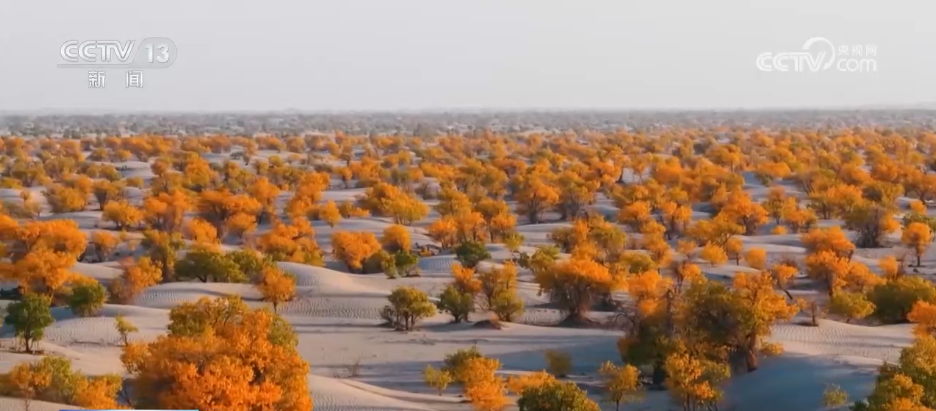 央视网消息:金秋十月,新疆喀什330万余亩胡杨迎来了一年中最美的观赏季。金色的胡杨与沙漠、碧水相映成趣,不仅勾勒出壮美的生态画卷,更催热了当地的秋季旅游。