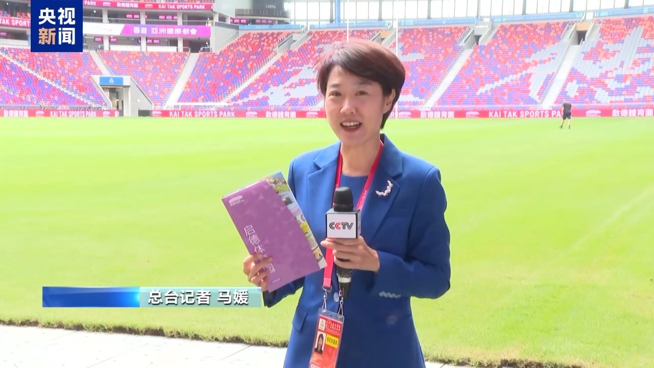 总台记者 马媛:欢迎大家来到启德体育园,我刚刚从工作人员手里拿到了访客指南。所有来到现场的观众都会领到这样一个小册子,根据指南就可以精准定位您想去的地方了。首先要为大家隆重介绍的是这一块映入眼帘的大草坪。主场馆采用了灵活的草坪转换系统,最底层是混凝土,然后是人造草,再上一层是保护板,保护板上面是真草。所以,视赛事、活动的需要,可灵活安排场地。