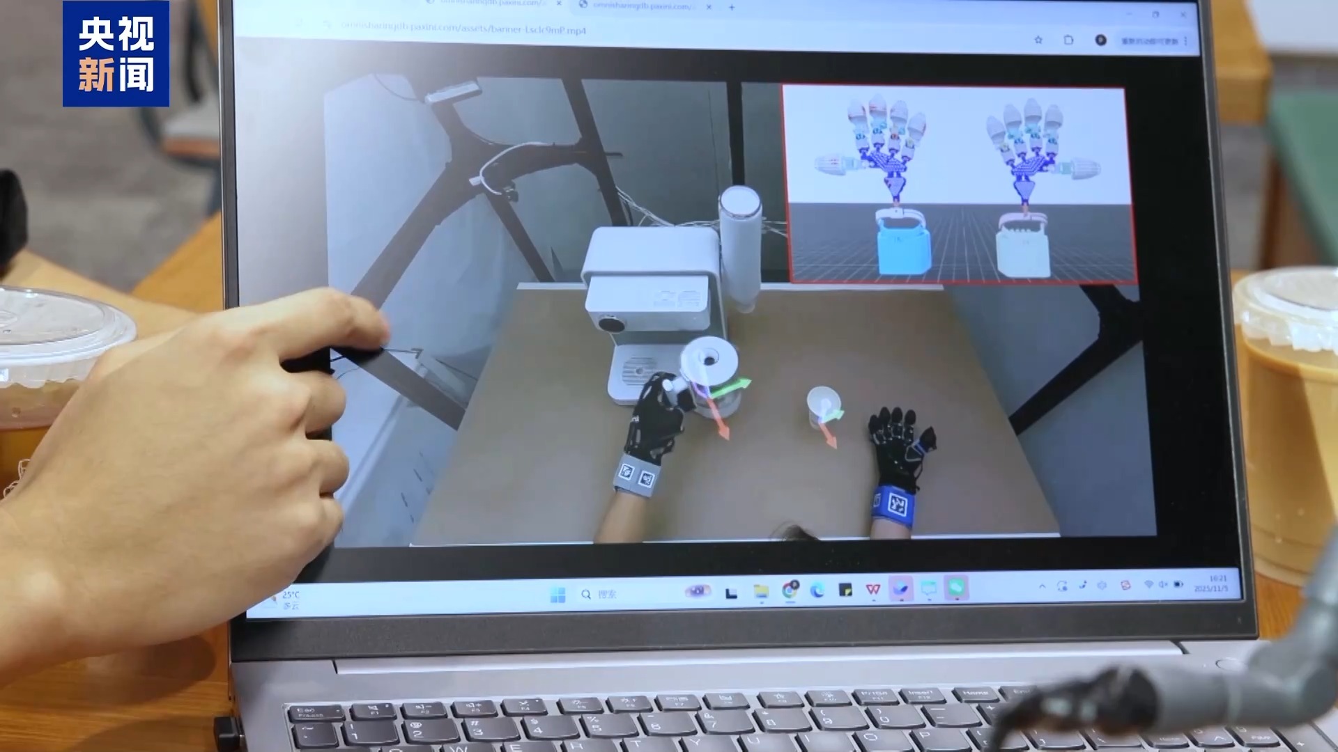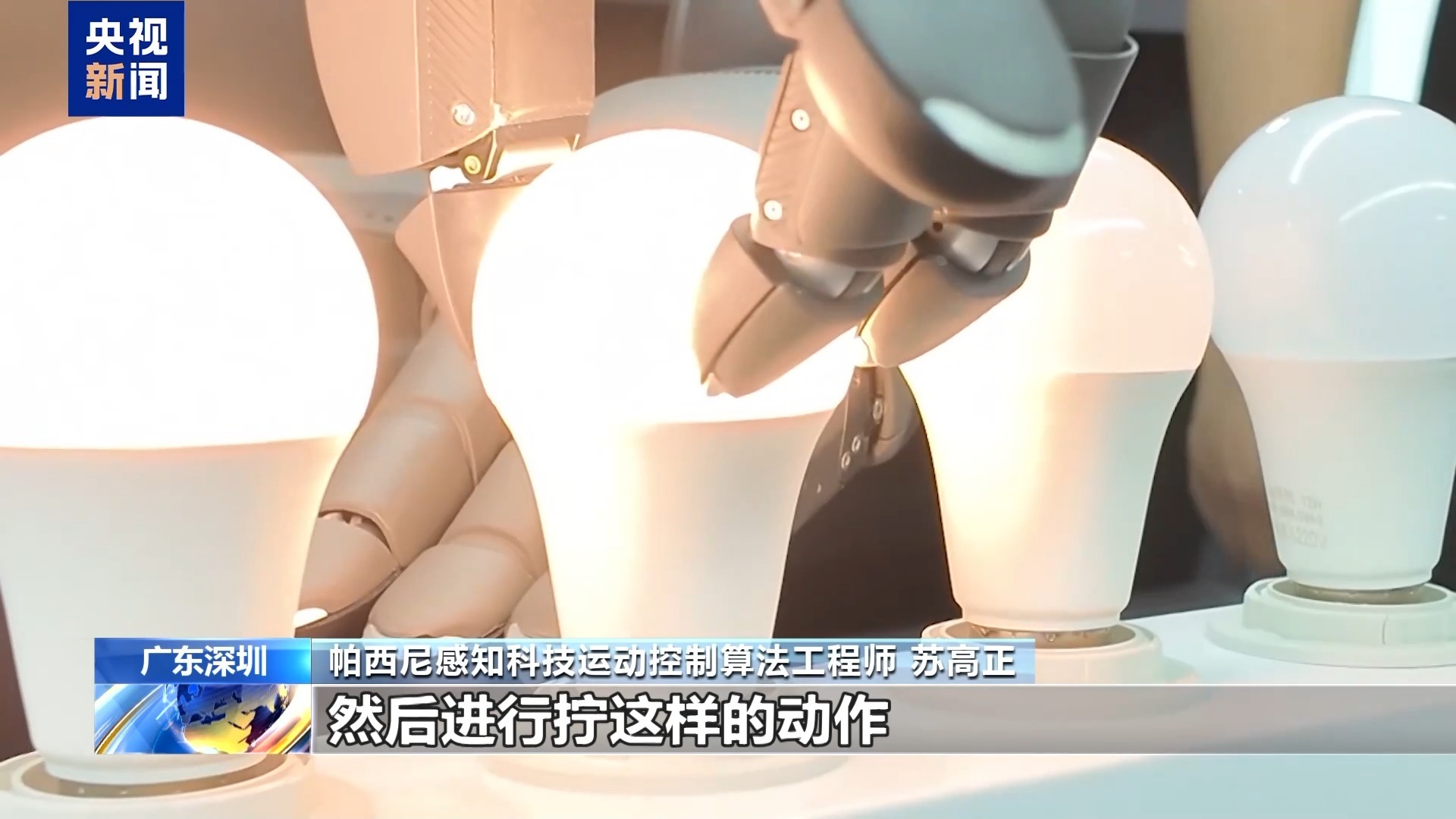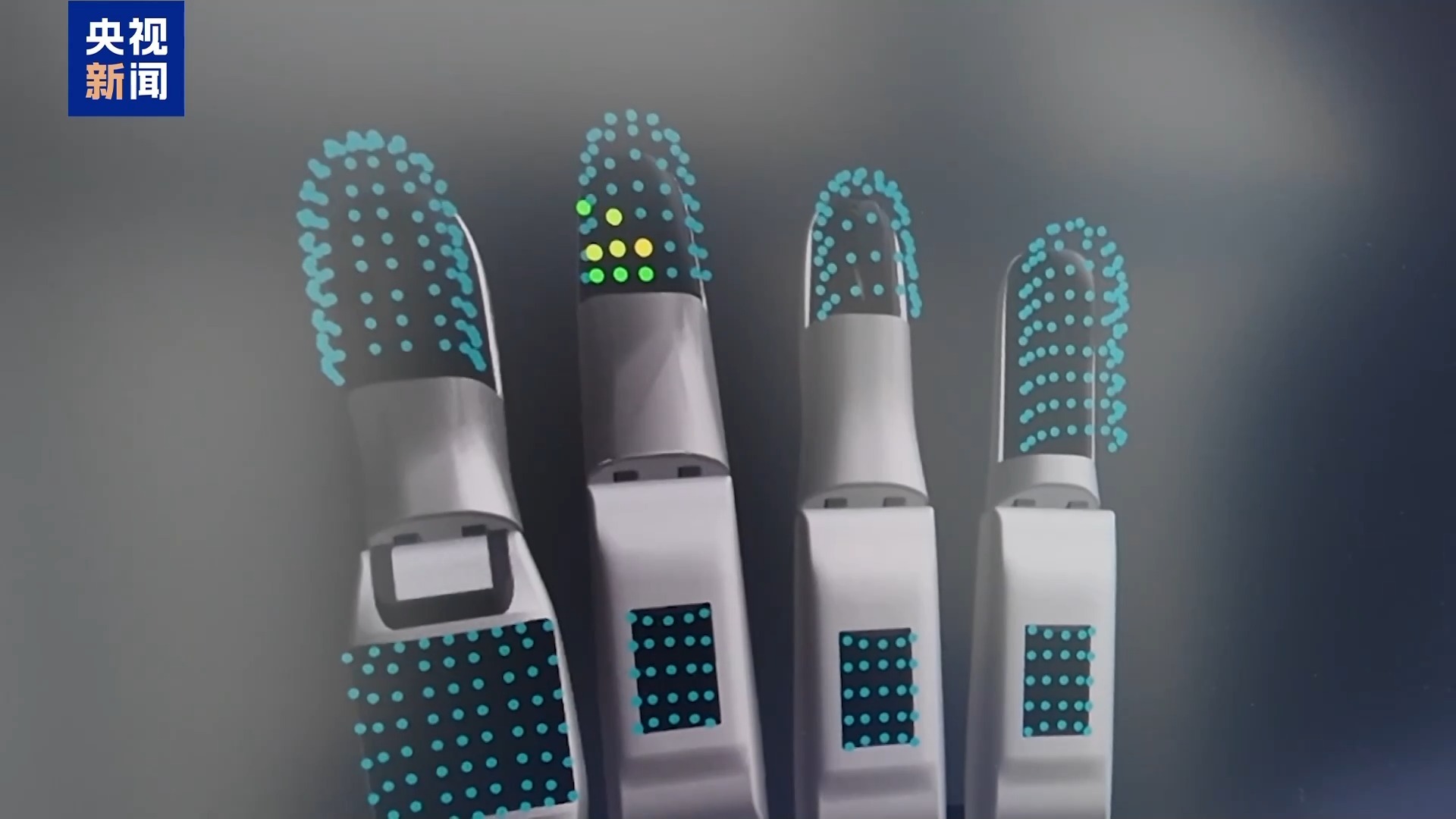 帕西尼感知科技运动控制算法工程师 苏高正:可以用非常微小的力接触它,进行拧的动作。指尖指腹都搭载了触觉传感器,可以感知到十五维度的信息,一只灵巧手是搭载了1140个传感单元。
