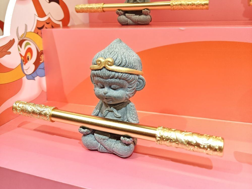 朱炳仁·铜开发的国潮款产品“悟空如意金箍笔”。新华社记者张璇 摄