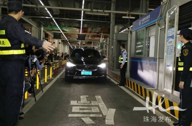 11月15日零时整,在港珠澳大桥珠海公路口岸,“粤车南下”正式实施后,首辆获准的粤牌私家车顺利通关。