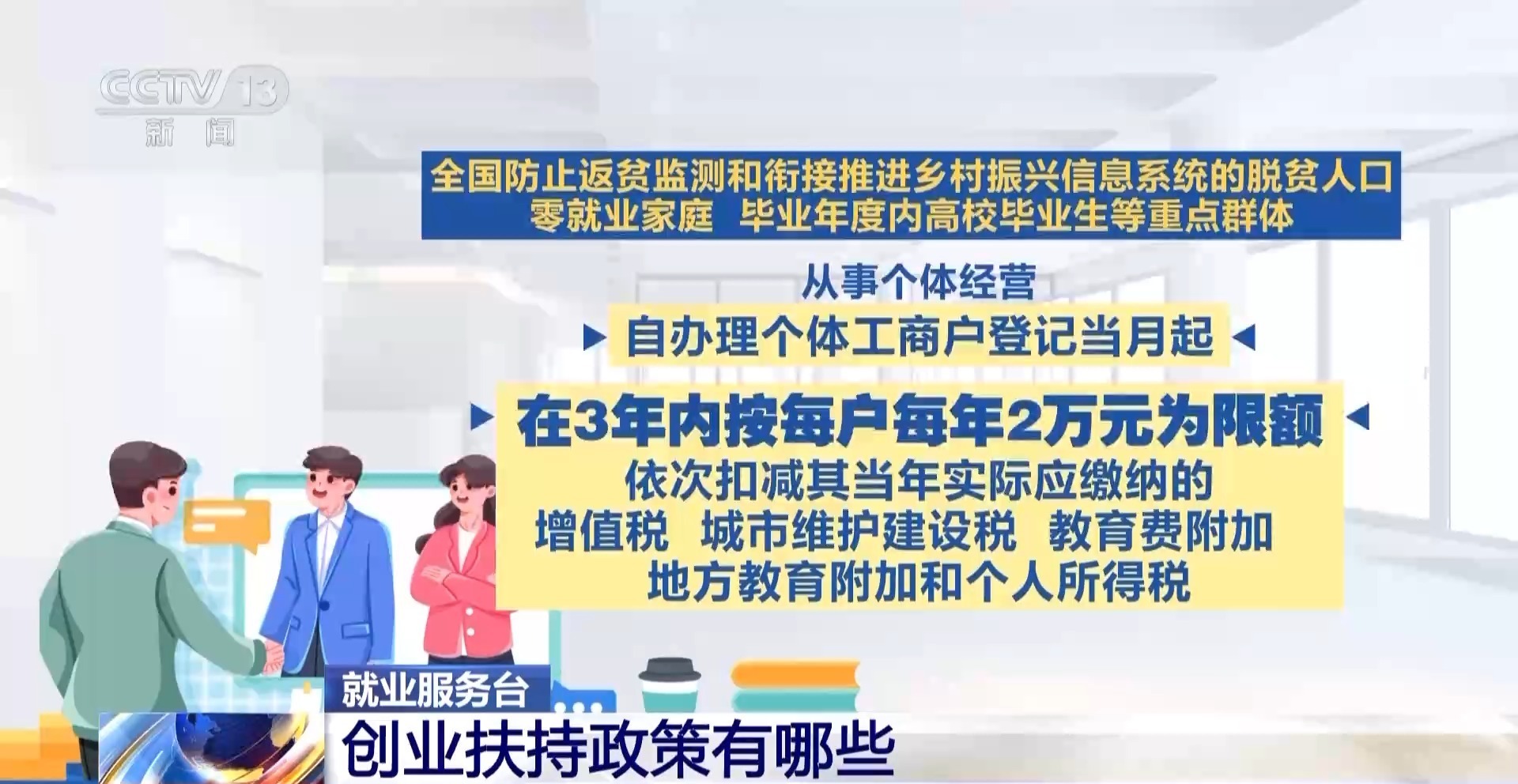 如果你属于全国防止返贫监测和衔接推进乡村振兴信息系统的脱贫人口、零就业家庭、毕业年度内高校毕业生等重点群体,从事个体经营,自办理个体工商户登记当月起,在3年内按每户每年2万元为限额依次扣减其当年实际应缴纳的增值税、城市维护建设税、教育费附加、地方教育附加和个人所得税。限额标准最高可上浮20%。政策执行期限截至2027年12月31日。