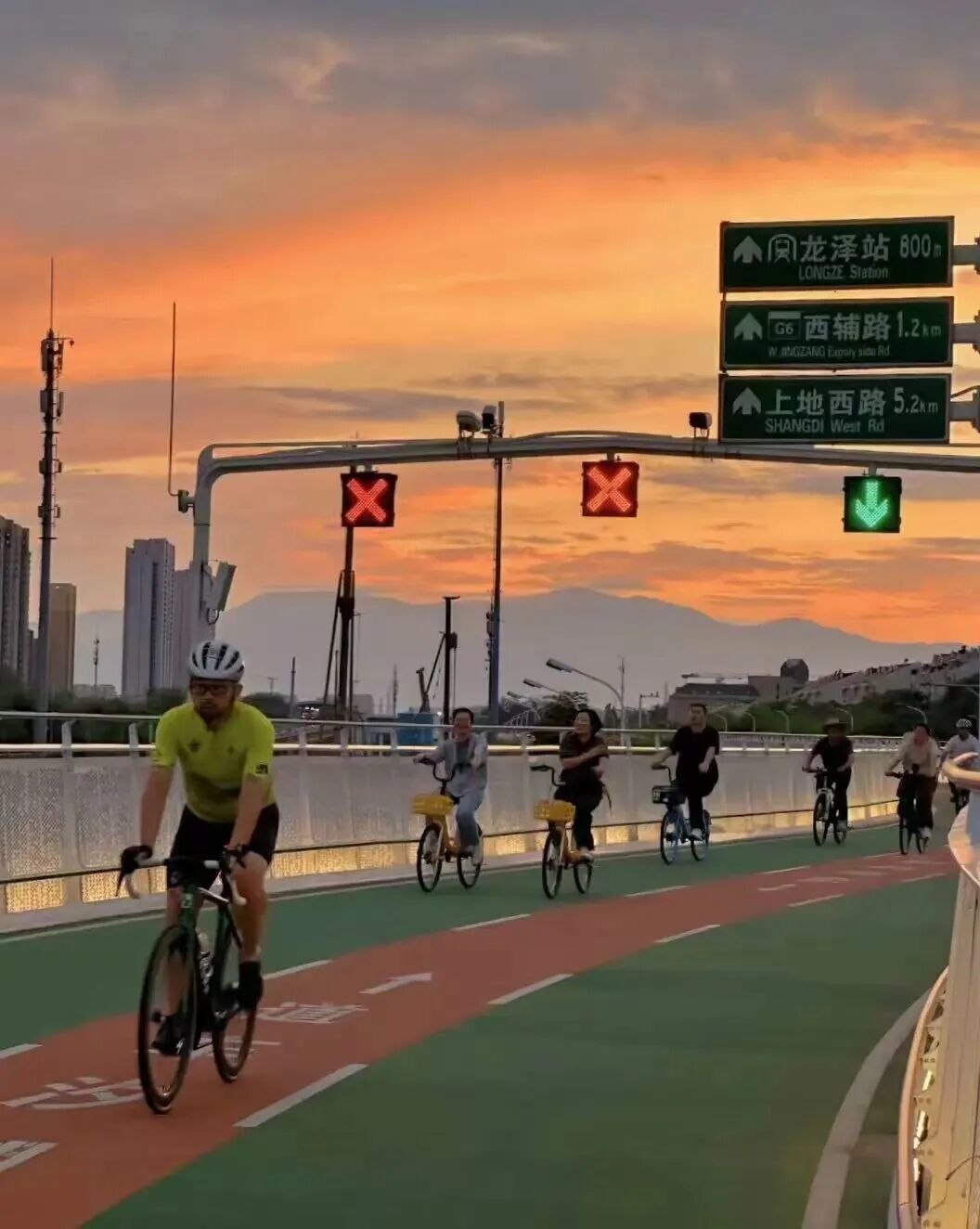据测算,骑行全程约25分钟,相比公交车节省51.9%的时间,其中56%的骑行量用于通勤,41%用于休闲健身,形成了健康的出行结构。