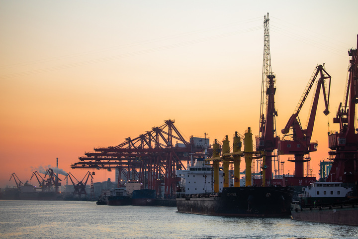 长江与东海交汇处的太仓港,桥吊如林、巨臂挥舞,昼夜不停地吊装作业,满载精密机电产品与新能源汽车的巨轮鸣笛启航,驶向全球版图……