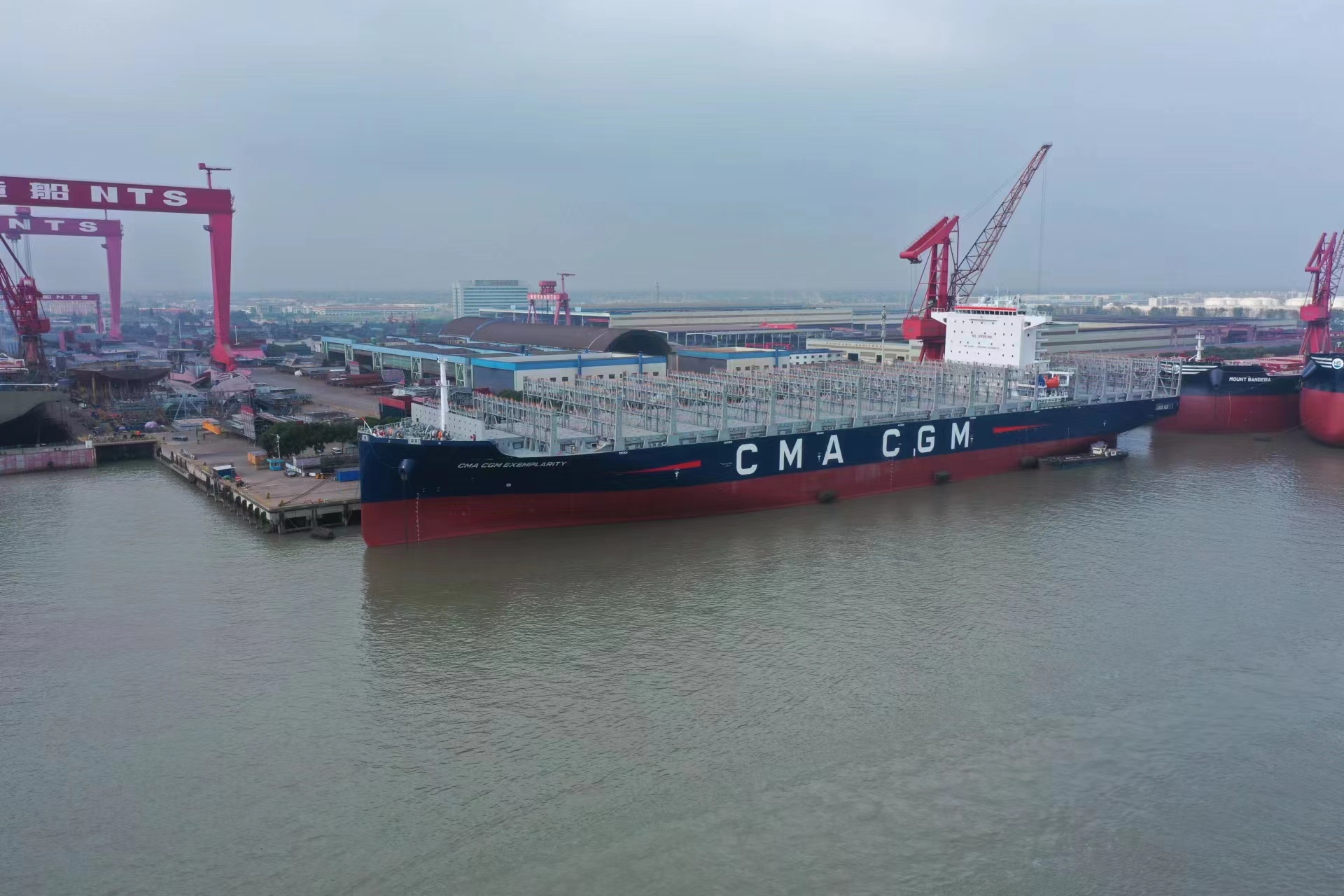 新时代造船交付的国内首艘甲醇双燃料9000TEU集装箱船,标志着泰州市在清洁能源船型领域实现突破;扬子鑫福为法国达飞海运集团承建的首制24000TEU双燃料动力集装箱船,是全球最先进的绿色船舶之一,与传统燃油集装箱船相比,二氧化碳排放量减少约20%,硫氧化物和颗粒物排放量减少99%。新时代造船建成国内最大单体智能化分段车间(480米长),提升平面分段效率30%,将巴拿马型散货船建造周期从2年缩短至8个月。