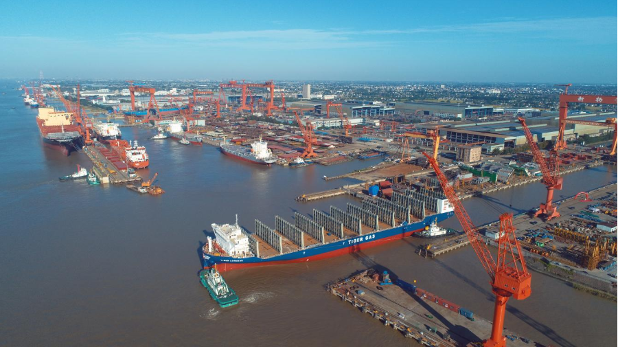 “襟江近海”的地理坐标,更让泰州成为长江经济带与长三角的关键节点。这里河道纵横、水网密布,水运业十分发达。这种“江海河联运”优势,不仅降低了原材料的运输成本,更便于成品船扬帆出海,为船舶出海打通了“最后一公里”。正是大江、大河、大港、大产业的优势,塑造了泰州造船业的独特基因。