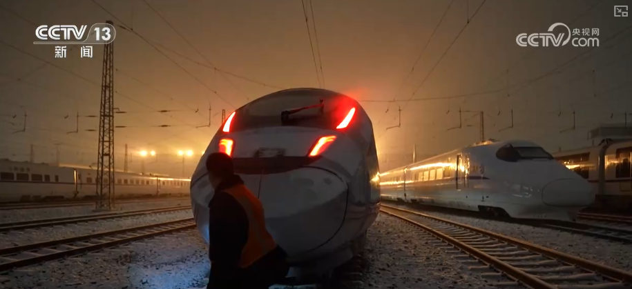 央视网消息:12月12日,京津冀地区迎来今冬首场大范围降雪。为确保动车组列车在低温环境下运行状态良好,国铁北京局连夜开展防寒加温作业。工作人员在零下5℃的环境中,为动车组启动空调系统,提升车厢温度,防止车内设备、水管等因低温冻结,保障动车组列车第二天安全正点出发。