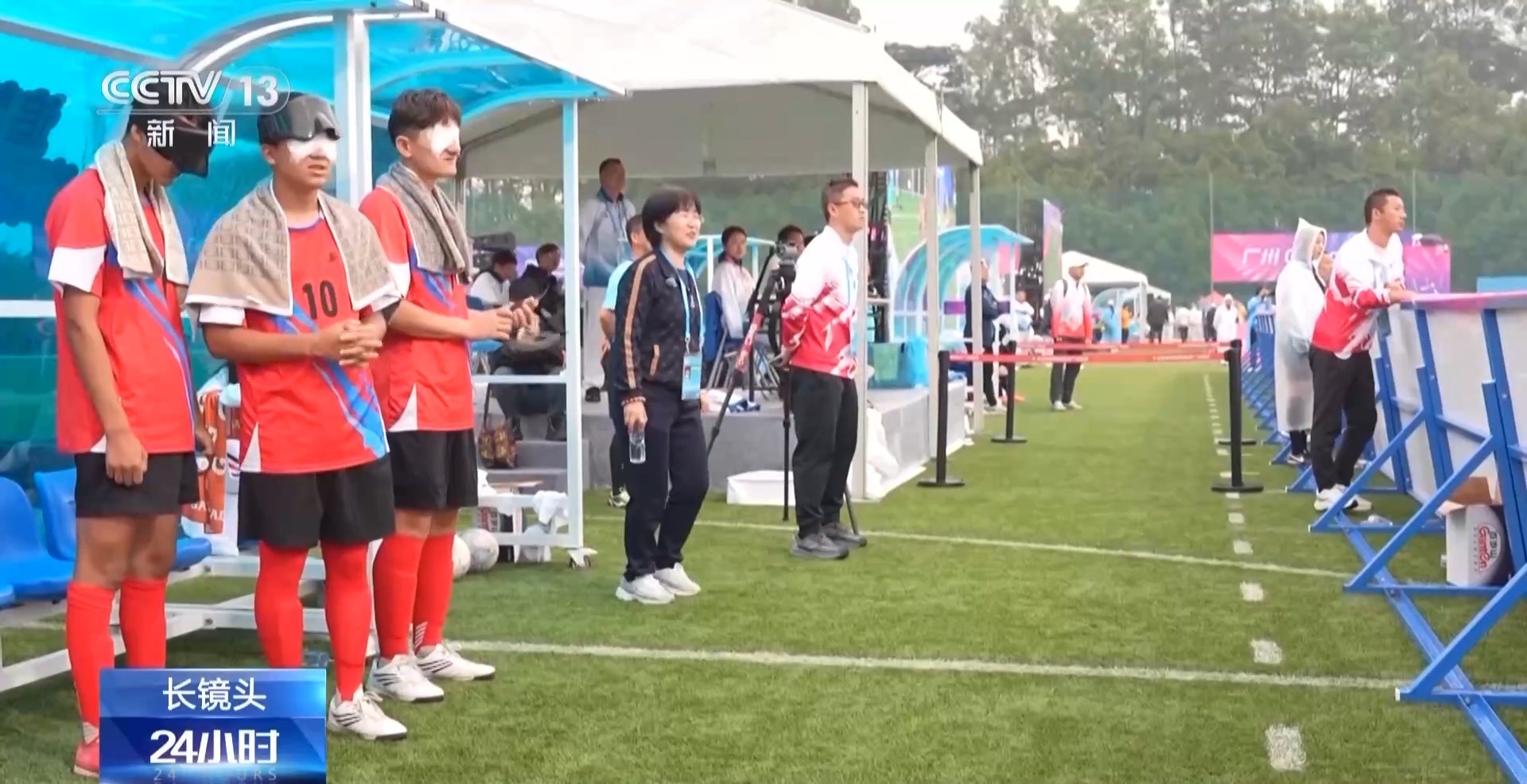 “喂喂喂”足球队的领队王静蓉,可能是队员们比赛时最揪心的那个人。她的一颗心,全系在绿茵场上的小球员身上,用手死死拉着同事的衣服,来缓解心中的紧张。今年11月,“喂喂喂”足球队的队员们奔赴广州,开启为期21天的封闭集训,领队王静蓉也随队前来,从球队成立之初就一直陪伴孩子们成长,精心照顾和默默付出,她早已经成为七个盲人少年的亲人。