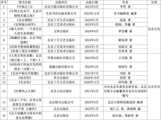 附件:2025阅读北京,京彩书香——“书香京华”数字阅读平台主题推荐书目结果(排名不分先后)