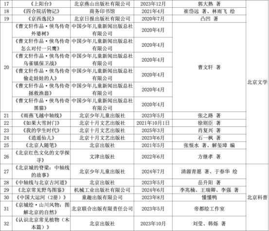 经过数月的征集与多轮专家评审,最终从众多参选作品中甄选出32种优秀北京主题图书,分为“北京文化”“北京历史”“北京文学”“北京科普”四大类别,构建了一幅立体、多元的“北京文化阅读地图”。