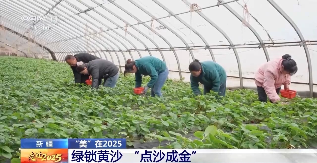 总台记者 卜鹏:这里是位于塔克拉玛干沙漠边缘的新疆和田地区和田县万亩设施农业基地,一座座标准化的大棚整齐排列,现在正值大棚果蔬采摘的季节,当地依托现代化农业管理技术,让曾经的万亩沙海变成助农增收的绿色基地。
