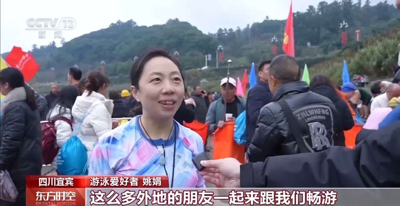 游泳爱好者 姚娟:这么多外地的朋友一起来跟我们畅游,非常开心,收获健康、收获友谊,也收获了快乐。