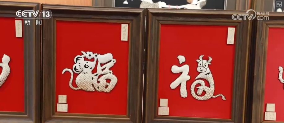 与江南鱼灯相映成趣的,是扎根黑土地的吉林省级非遗——查干湖鱼皮制作技艺。在“礼遇吉林”非遗体验店,鱼皮经洗料、鞣制、剪刻、拼贴等工序,变身充满民族风情的精美艺术品。