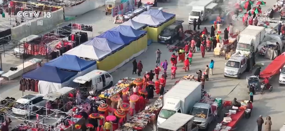 除了吃喝购,精彩的民俗表演更添喜庆氛围。辞旧迎新之际,附近村子的乡亲们组成社火队伍专程赶来。大家身着戏服,伴着欢快鼓点,扭秧歌等节目轮番上演,用灵动舞步和翻飞道具,把新年的祝福传递给在场每一个人。
