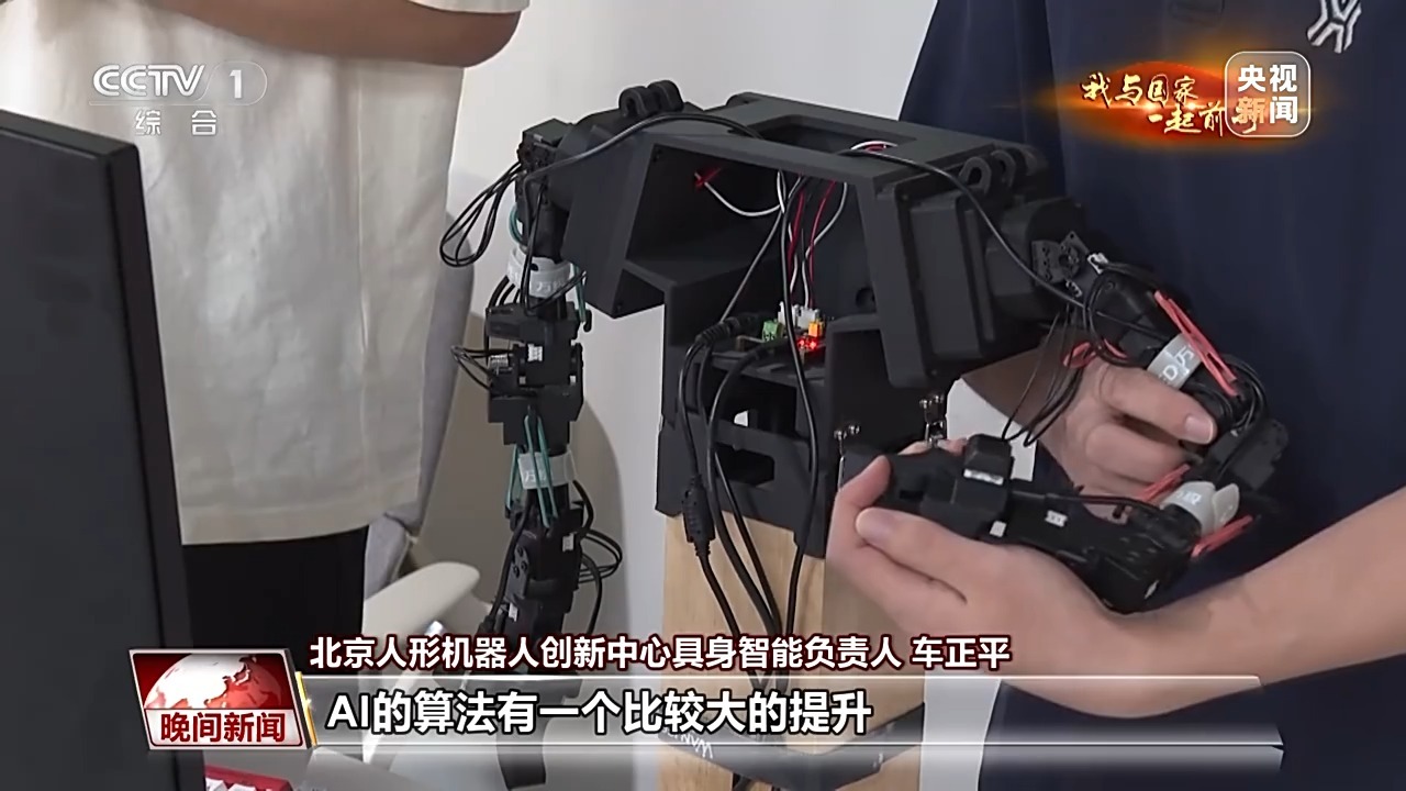 北京人形机器人创新中心具身智能负责人 车正平:AI的算法有一个比较大的提升,它能够通过大模型去进行相应的任务能力的拆解,整个全链路都需要我们自主化的算法去实现。