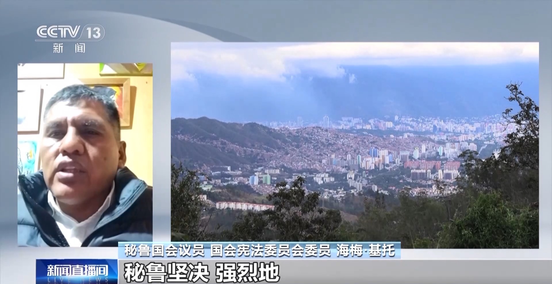 秘鲁国会议员 国会宪法委员会委员 海梅·基托:秘鲁坚决、强烈地谴责美国对委内瑞拉的入侵,谴责美国绑架委内瑞拉总统,并试图在美国对其审判的行为。当务之急应是尊重主权、尊重国际法,任何人都不能充当世界警察或法官。恰恰相反,各国人民的自决权必须得到尊重,我们拒绝并谴责这种近乎恐怖主义的行动,以及美国在委内瑞拉这个主权国家的非法行径。