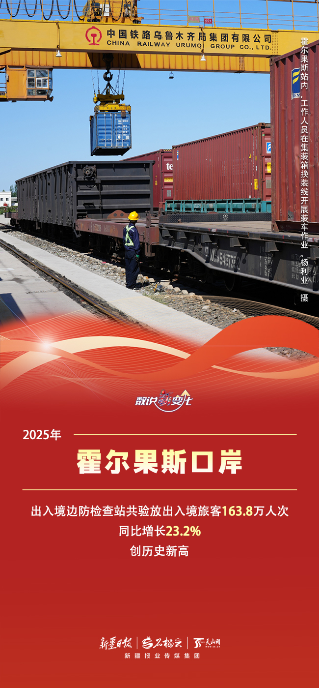 过去一年,新疆口岸经济活力十足,自信新疆也在开放中得到了最直接、最有力的印证。霍尔果斯、阿拉山口、吉木乃、塔克什肯……这些口岸如同镶嵌在祖国西北边陲的璀璨明珠,在共建“一带一路”宏伟蓝图中,焕发出前所未有的生机。2025年,新疆口岸实现了哪些新突破?取得了怎样的亮眼成绩?今天的《数说“新”变化》一起来看看。