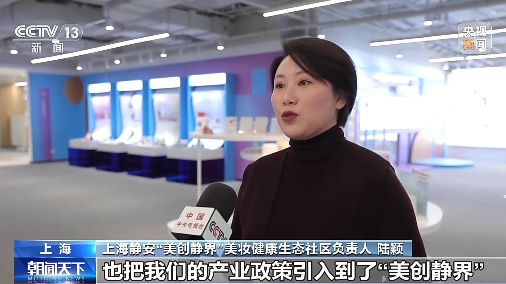 上海静安“美创静界”美妆健康生态社区负责人 陆颖:也把产业政策引入到了“美创静界”,鼓励企业做研发,鼓励企业做首发,鼓励企业更多地能够开放自己的视野,对接更多的国际资源。