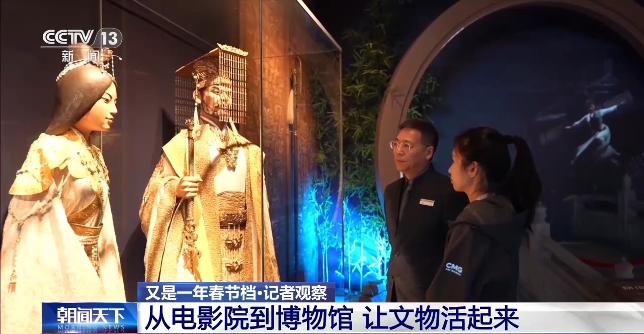 中国电影博物馆副馆长 刘军:把以前的上海美影厂曾经在我们馆藏的《大闹天宫》《哪吒闹海》这些动画片里头的手稿、文物就放在IMAX影厅的外面。用观影的热情带出来,让观众沿着这个电影追溯中国文化的优秀底蕴。